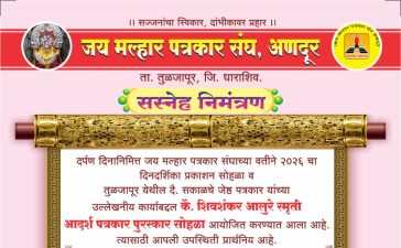 दर्पण दिनानिमित्त जय मल्हार पत्रकार संघाचा दिनदर्शिका प्रकाशन व आदर्श पत्रकार पुरस्कार सोहळयाचे उद्या आयोजन