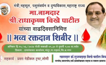 राहता प्रतिनिधी / विट्ठल ठोंबरे : मा.ना.राधाकृष्ण विखे पाटील (मंत्री,महसूल,पशुसंवर्धन व दुग्धविकास, महाराष्ट्र राज्य) यांच्या वाढदिवसानिमित्त खासदार डॉ.सुजयदादा विखे पाटील...