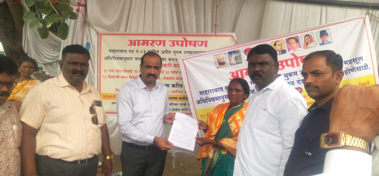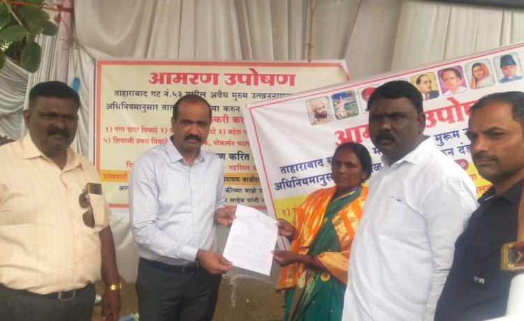 ताहाराबाद येथील मुरूम उत्खनन कारवाई करिता चालू असलेले उपोषण आर.पी. आय (A गट) च्या मध्यथीने स्थगित
