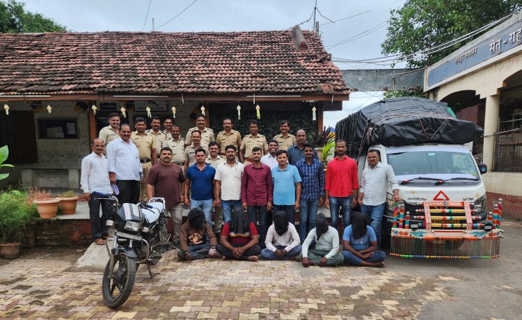 राहुरी प्रतिनिधी / ज्ञानेश्वर सुरशे : राहुरी पोलीस स्टेशनच्या रात्रगस्त करणाऱ्या पथकास माहिती मिळाली की , गुहा परिसरामध्ये काही संशयीत लोक टाटा कंपनीची पांढऱ्या रंगाची मालवाहतूक गाडी व मोटरसायकलने येऊन दरोड्याच्या तयारीने टेहळणी करत आहे. सदर माहितीच्या अनुषंगाने राहुरी पोलीस स्टेशन चे रात्रगस्त अधिकारी/ कर्मचारी यांनी व डीबी पथकाने समन्वय साधून माहिती मिळालेल्या ठिकाणी छापा कारवाई केली असता सदर ठिकाणी एकूण सात संशयीत इसमा पैकी मोटरसायकल वरील तीन इसम मोटरसायकलने पळून गेले.