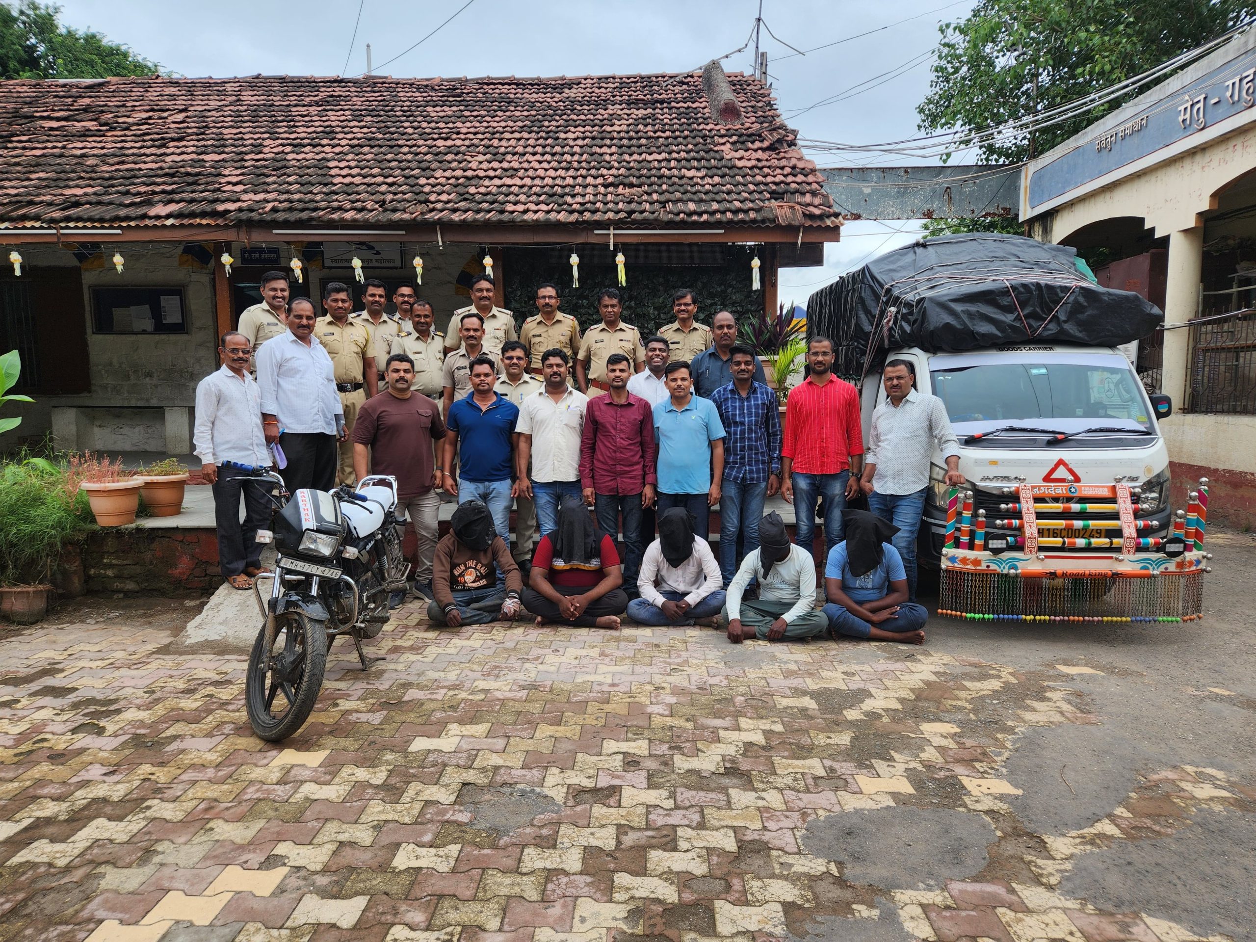 नमूद सातही आरोपींना विरुद्ध भारतीय न्याय संहिता कलम 310 (4)(5) प्रमाणे गुन्हा दाखल करण्यात आलेला असून गुन्ह्यात एकूण पाच आरोपींना अटक करण्यात आली असून त्यांना पोलीस कस्टडी रिमांड कामी मान्य न्यायालयात हजर करण्यात आलेले आहे.