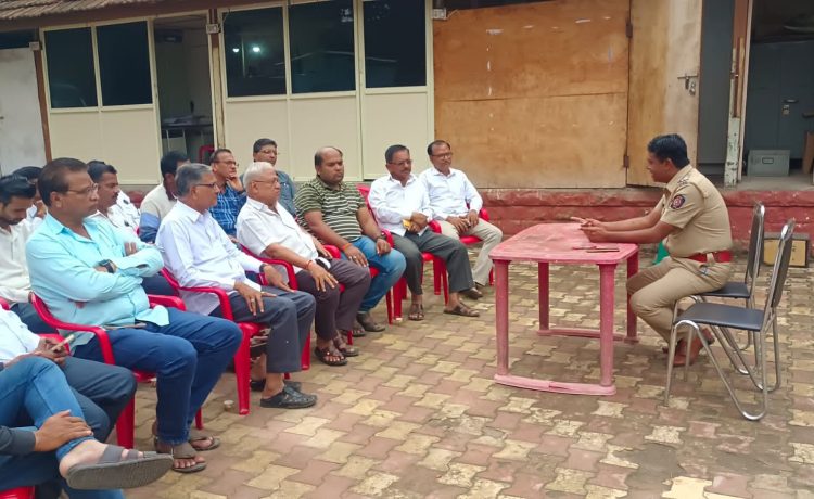 राहुरी प्रतिनिधी / ज्ञानेश्वर सुरशे : दिनांक.27/07/2024 रोजी 17/00 वा. ते 18/00 वा. चे दरम्यान राहुरी पोलीस स्टेशन हद्दीतील राहुरी शहरातील व्यापारी असोशियन यांची राहुरी पोलीस स्टेशन येथे मीटिंग घेण्यात आली आगामी गणेशोत्सव अनुषंगाने सौंदर्यपूर्ण वातावरणात पारंपारिक पद्धतीने डीजे मुक्त गणेश उत्सव कसा साजरा करण्यात येईल याबाबत चर्चा करण्यात आली सर्वांनी होकार दर्शवला असून तसेच सीसीटीव्ही कॅमेरे याबाबतही चर्चा करण्यात आली. शासनाचे मार्गदर्शनाप्रमाणे सर्वांना सूचना देण्यात आले आहेत तसेच त्यांच्या अडीअडचणी बाबत विचारपुस करण्यात आली असून कायदा व सुव्यवस्था राखण्याबाबत मार्गदर्शन करून सुचना देण्यात आल्या आहेत.