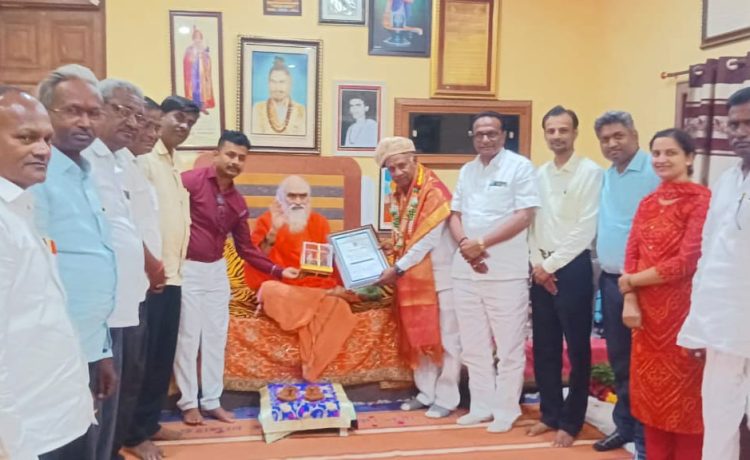 बिलोली प्रतिनिधी / साईनाथ गुडमलवार कासराळीकर : श्री.श्री.श्री १००८ केदारपीठ जगद्गुरु भिमाशंकरलिंग शिवाचार्य महास्वामीजी च्या वतीने गोपाळचावडी नादेड येथे स्वर्गीय माजी आमदार गंगारामजी ठक्करवाड साहेब यांना राजनिती व धर्म क्षेत्रात अतुलनीय कार्य केल्याबद्दल सत्यशोधक संवर्धक ही मरणोत्तर पदवी देण्यात आली.