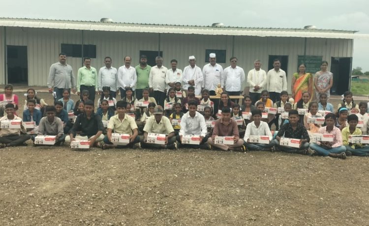 पिंपराळे येथील शालेय व्यवस्थापन समितीचे काळू शिंदे व भगवान सातपुते यांच्याकडून शालेय विद्यार्थांना मोफत बूट व सॉक्सचे वाटप