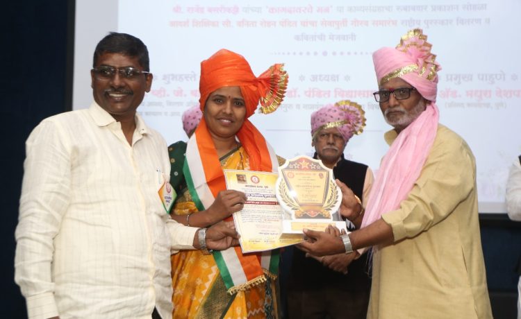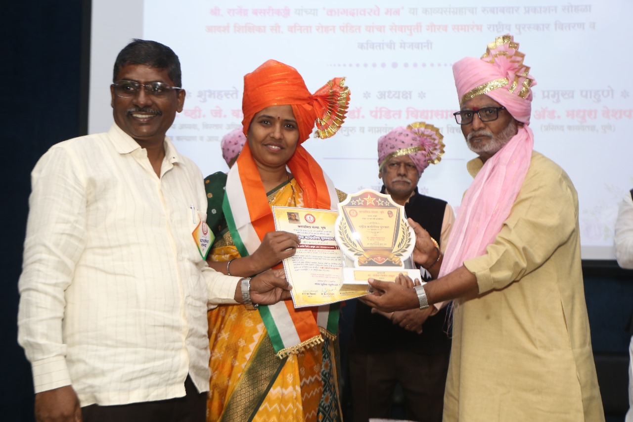 एसआर 24 न्यूज़ प्रतिनिधी / भारत कवितके : साहित्य सम्राट पुणे या संस्थेने मागील बारा वर्षांत केलेल्या साहित्यिक उपक्रमांसाठी संस्थेच्या सचिव सौ.अर्चना अष्टुळ यांनी बहुमूल्य योगदान दिले आहे. त्यांचे हे कार्य कौतुकास्पद असल्याने काव्यमित्र पुणे या संस्थेने २४व्या वर्षी सायन्स पार्क, तारांगण हॉल पिंपरी चिंचवड येथे आयोजित केलेल्या विविध पुरस्कार प्रदान सोहळ्यात सौ.अष्टुळ यांना राष्ट्रीय कार्यगौरव पुरस्कार २०२४ मान्यवरांच्या हस्ते देऊन सन्मानित करण्यात आले.