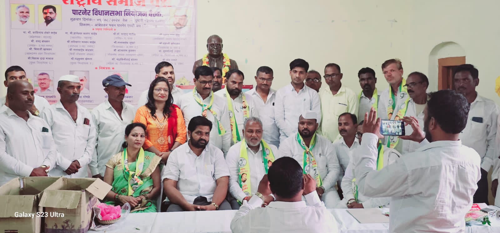 पारनेर प्रतिनिधी / गंगासागर पोकळे : राष्ट्रीय समाज पक्षाचे राष्ट्रीय अध्यक्ष माजी मंत्री महादेव जानकर साहेब यांच्या आदेशानुसार अहिल्यानगर जिल्ह्यातील पारनेर येथे आंबेडकर भवन बैठक आयोजन केली होती. या कार्यक्रमाला प्रमुख मार्गदर्शक म्हणून पक्षाचे प्रदेशाध्यक्ष काशिनाथ शेवते साहेब यांच्या अध्यक्षतेखाली बैठक पार पडली, तसेच मुख्य महासचिव ज्ञानेश्वर सलगर साहेब हेही यावेळी उपस्थित होते. या बैठकीमध्ये राहुरी, नेवासा, श्रीरामपूर, कोपरगाव, कर्जत, पाथर्डी, श्रीगोंदा, संगमनेर, अकोले या ठिकाणच्या विधानसभा निवडणूका राष्ट्रीय समाज पक्ष लढवणार असल्याचे जाहीर करण्यात आले. या सर्व ठिकाणच्या विधानसभा जागेसाठी निवडणूक निरीक्षक म्हणून उत्तर महाराष्ट्राचे अध्यक्ष शरद बाचकर हे राहतील विधानसभा निवडणुकी संदर्भात वरील पदाधिकाऱ्यांच्या उपस्थितीत नियोजनासाठीची आढावा बैठक पार पडली.