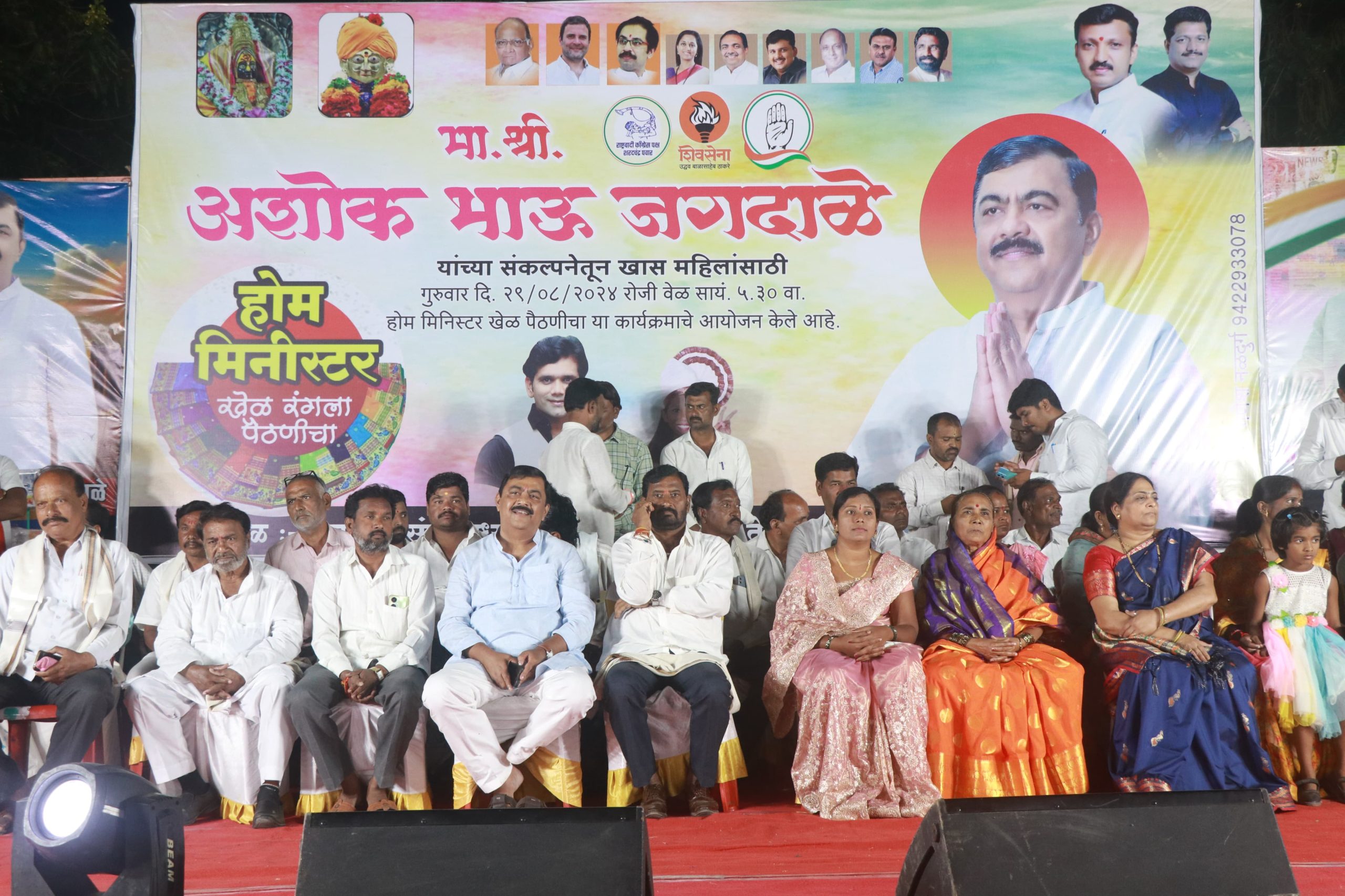 तेर प्रतिनिधी / विजय कानडे : दिनांक २९/८/२०२४ रोजी मा.श्री.अशोक भाऊ जगदाळे यांच्या संकल्पनेतून तेर गावातील महिलांसाठी खास क्रांती नाना मळेगावकर प्रस्तुत होम मिनिस्टर खेळ पैठणीचा या कार्यक्रमाचे आयोजन करण्यात आले होते. सदर कार्यक्रमास महिलांची लक्षणीय उपस्थिती होती. विजेत्यांना वॉशिंग मशीन, फ्रिज, टिव्ही, कुलर अशी 11 मोठी बक्षिसे तर सहभागी सर्वच महिलांना आकर्षक भेटवस्तू देण्यात आल्या. दैनंदिन कामाच्या धावपळीतून स्वतःसाठी वेळ काढत महिलांनी या कार्यक्रमाचा आनंद घेतला.