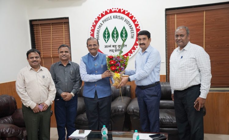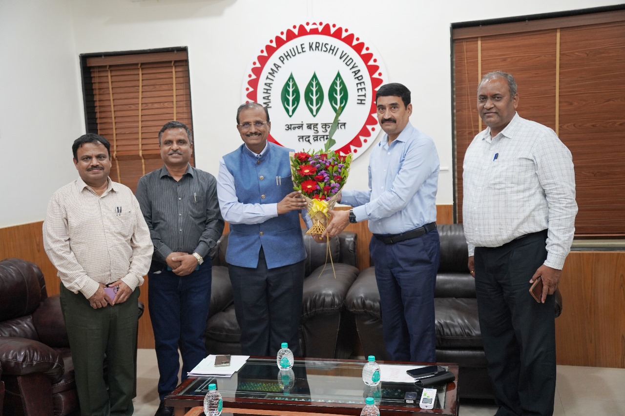 राहुरी प्रतिनिधी / ज्ञानेश्वर सुरशे : पुणे येथील महाराष्ट्र कृषि शिक्षण व संशोधन परिषदेचे महासंचालक श्री. रावसाहेब भागडे यांनी महात्मा फुले कृषि विद्यापीठाला भेट दिली. यावेळी महात्मा फुले कृषि विद्यापीठाचे कुलगुरू डॉ. पी. जी. पाटील, कुलसचिव श्री. अरुण आनंदकर, संशोधन संचालक डॉ. विठ्ठल शिर्के व विस्तार शिक्षण संचालक डॉ. गोरक्ष ससाणे उपस्थित होते. याप्रसंगी कुलगुरू डॉ. पी. जी. पाटील यांनी विद्यापीठाच्या शिक्षण, संशोधन व विस्तार कार्याची माहिती महासंचालकांना दिली. यावेळी विद्यापीठातील रिक्त जागांबद्दलही चर्चा करण्यात आली तसेच मुख्यमंत्री युवा कार्य प्रशिक्षण योजनेसाठी विद्यापीठातून पाठविल्या गेलेल्या प्रस्तावांबाबत त्यांनी माहिती घेतली. त्याचप्रमाणे या वर्षाची कृषि पदवीची प्रवेश परीक्षा याबाबत त्यांनी माहिती घेतली. विद्यापीठाचा सेंद्रिय संशोधन प्रकल्प, बांबू प्रकल्प व पुणे कृषि महाविद्यालयातील देशी गाय संशोधन व विकास प्रकल्पाबाबत त्यांनी माहिती घेतली.