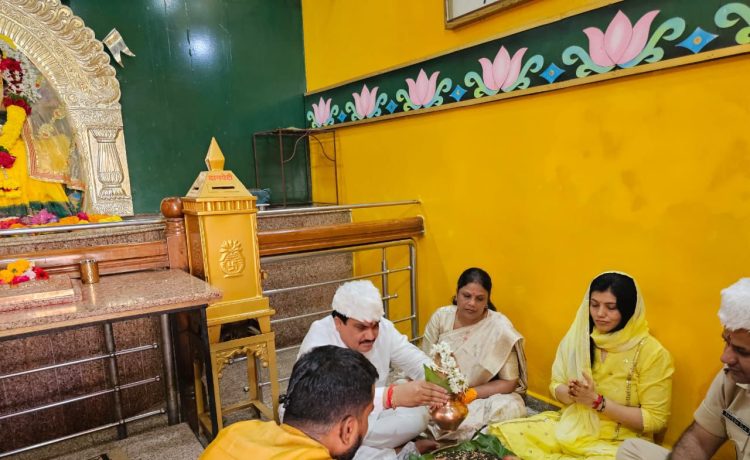 नगर प्रतिनिधी / जितू शिंदे :- सावेडी पाईपलाईन रोड वरील श्री तुळजाभवानी मंदिर येथे जिल्हा पोलिस अधीक्षक मा.श्री.राकेश ओला व सौ. ओला, तुळजाभवानी मंदिराचे संस्थापक, अध्यक्ष अशोक कानडे व सौ. सुनिता कानडे, कु. सानिका कानडे, यांच्या शुभहस्ते घटस्थापना व तुळजाभवानी देवीची महाआरती संपन्न झाली.
