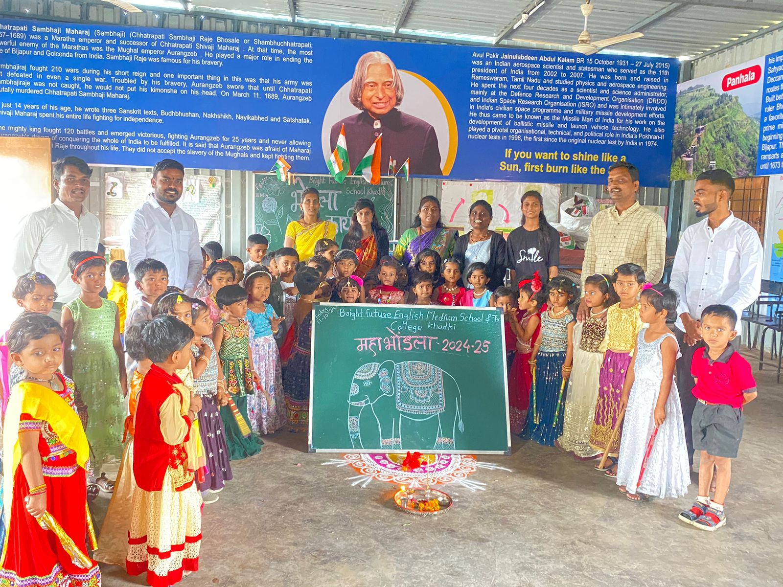 इंदापूर तालुका प्रतिनिधी / प्रविण वाघमोडे : ब्राईट फ्युचर इंग्लिश मीडियम स्कूल व जुनिअर कॉलेज खडकी येथे नवरात्र उत्सवानिमित्त नृत्य स्पर्धा व महाभोंडल्याचे आयोजन करण्यात आले. यावेळी संस्थेचे अध्यक्ष राजू गायकवाड सर , सचिव ऋषिकेश सर, खजिनदार काळे सर, उपाध्यक्ष तेजस गायकवाड सर, प्राचार्य बाबू सांगळे सर उपस्थित होते. प्रथम नृत्य स्पर्धा घेण्यात आल्या ज्यामध्ये पहिली ते बारावीच्या विद्यार्थ्यांनी आपल्या उत्कृष्ट नृत्य कलेचे सादरीकरण केले.
