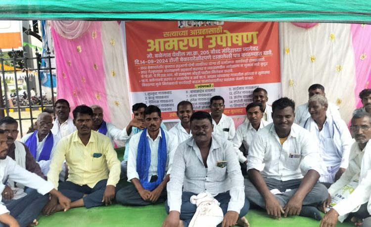 नांदेड प्रतिनिधी / मिलींद बच्छाव : नायगाव तालुक्यातील बळेगाव येथील बौद्ध विहाराची जागा अनेक वषार्पासून बौद्ध समाजाच्या ताब्यात होती परंतु सरपंच, ग्राम सदस्य व ग्रामसेवक व्ही.एन.कानगुले यांनी मालमत्ता कर रजिस्टर ला खडाखोड करून अण्णाभाऊ साठे स्मारकाच्या नावावर जागा करून दिलं आहे, नायगाव न्यायालयाचा मनाई हुकूम असताना सुद्धा न्यायालयाच्या अवमान करून सदरील जागेवर टीन टाकून अण्णाभाऊ साठे यांच्या स्मारकास ही जागा बेकायदेशीर दिल्याबद्दल बळेगाव येथील बौद्ध समाजाच्या वतीने मा.जिल्हाधिकारी साहेबांच्या निवेदन देऊन जिल्हा कचेरीसमोर बेमुदत उपोषणास बसले आहेत.