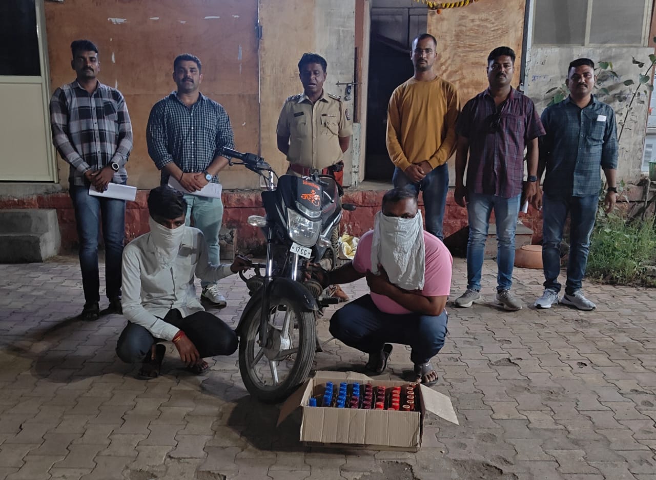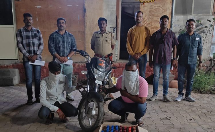 राहुरी प्रतिनिधी / ज्ञानेश्वर सुरशे : प्रस्तुत घटना अशी की दिनांक 15/10/2024 रोजी सायंकाळी पोलीस निरीक्षक श्री ठेंगे साहेब यांना गुप्त बातमी दारामार्फत बातमी मिळाली की, राहुरी शहरात अवैधरित्या वाहनावर दारूची चोरटी वाहतूक होत आहे अशी बातमी मिळाल्याने पोलीस निरीक्षक श्री ठेंगे साहेब यांनी तात्काळ पथक तयार करून राहुरी शहरांमध्ये पाठवून वाहनावर अवैधरित्या दारूची चोरटी वाहतूक करणाऱ्या वाहनांचा शोध घेऊन खात्री करून कारवाई करणे बाबत सूचना दिल्याने पथकाने बातमीच्या ठिकाणी सापळा लावून राहुरी शहरांमध्ये एक प्लेटिना गाडी क्र. एम एच 17 सी सी 1328 या वाहनावर इसम नामे 1) अक्षय गणेश बिबवे वय 29 वर्ष 2) विजय अशोक जंगले वय 38 वर्ष दोन्ही राहणार पानेगाव तालुका नेवासा जिल्हा अहमदनगर हा दारूची चोरटी वाहतूक करताना मिळून आल्याने त्यांच्यावर राहुरी पोलीस स्टेशन येथे गुन्हा दाखल करण्यात आलेला असून त्यांच्याकडून एकूण 6,690, ₹ किमतीची विदेशी दारू व 40,000₹ किमतीची प्लेटिना गाडी एकूण मुद्देमाल 46,690 रु मुद्देमाल जप्त करण्यात आला आहे