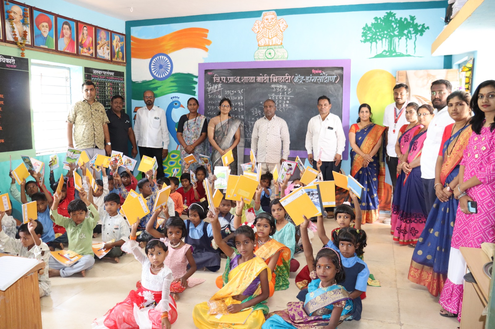 शालेय दप्तर, वह्या, कंपासपेटी, पेन्सिल, पेन, गरम कपडे,दिपावली चा फराळ इ. वस्तु प्रत्येक विद्यार्थ्याला वाटप करण्यात आला. आदर्शच्या मुख्याध्यापिका श्रीम. वैशाली सोनवणे, श्रीम. अश्विनी महाले, श्री. विनय सोनवणे, श्री. अविनाश वाघ श्रीम. वैशाली सावंत, श्री.दिपक जाधव, श्री.दिनेश आहिरे, श्री.मनोज पाटील,श्री. योगेश बोरसे, हर्षदा पाटिल,तसेच चाफ्याच्या पाड्याचे मुख्याध्यापक श्री.प्रमोद जगताप, कृतिशील शिक्षक राहुल भामरे, मोठी भिलाटी येथील कृतीशील शिक्षक रौंदळ सर सर्व शिक्षक व शिक्षकेतर कर्मचारी उपस्थित होते.