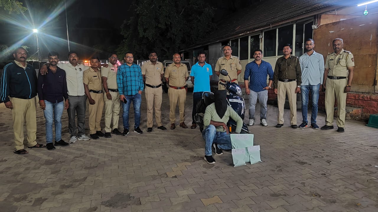 राहुरी प्रतिनिधी /आर.आर. जाधव : गुरुवार दिनांक 31/10 /2024, रोजी राहुरी पोलीस स्टेशन येथे असताना पोलीस निरीक्षक संजय ठेंगे यांना गोपनीय बातमीदारा मार्फत बातमी मिळाली की ब्राह्मणी परिसरात एक इसम घातक शस्त्र जवळ बाळगून दहशत करविताना फिरत आहे अशी बातमी मिळाली होती सदर नमूद बातमीची हकीगत गुन्हे शोध पथकास देऊन तात्काळ नमूद ठिकाणी रवाना केले असता सदर ठिकाणी टाकलेल्या छाप्यामध्ये नमूद इसम नामे इस्माईल रफिक शेख वय. 43 रा. बनकर वस्ती ब्राम्हणी ता. राहुरी हा बेकायदेशीर रित्या त्याचे ताब्यामध्ये 780 ग्राम वजनाचा 12200 रुपये किमतीचा गांजा व मोपेड एम. एच. 17 सि. वाय.9353 कब्जात बाळगताना मिळून आला आहे. सदर ठिकाणी नायब तहसीलदार संद्या दळवी मॅडम आणि दोन पंचांसमक्ष पंचनामा केला असून त्यास राहुरी पोस्टे येथे आणून पोलीस हेड कॉन्स्टेबल राहुल बबन यादव यांनी त्याचेविरुध्ध फिर्याद नोंदवली असून त्यांच्या फिर्यादीवरून राहुरी पोस्टे एन. डी. पी. एस कायद्या प्रमाणे गुन्हा नोंदविण्यात आला आहे. सदर गुन्ह्याचा तपास पोलीस उपनिरीक्षक चारुदत्त खोंडे हे करीत आहेत.