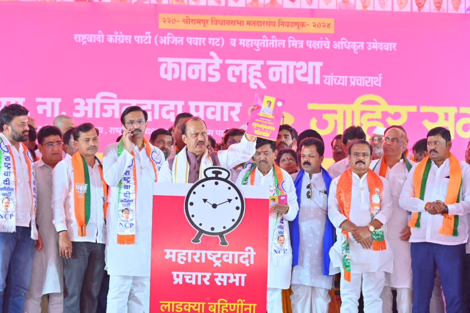 श्रीरामपूर विशेष प्रतिनीधी / इनायत अत्तार : राज्यात महायुतीचे सरकार येणार असल्याचे सर्वेक्षणातून समोर आले आहे. श्रीरामपूर राहुरी मतदारसंघात लहू कानडे विजयी होतील. त्यांनी गत पाच वर्षांत १२०० कोटींची कामे केली होती. पुढील काळात त्यांना ३ हजार कोटी रुपये देऊ अशी ग्वाही, राज्याचे उमुख्यमंत्री अजित पवार यांनी देत श्रीरामपूरला गत वैभव प्राप्त करून देण्याचा वादा पवार यांनी दिला. महायुतीचे उमेदवार आ. लहू कानडे यांची उमेदवारी मुख्यमंत्री एकनाथ शिंदे, उपमुख्यमंत्री देवेंद्र फडणवीस व मी स्वतः निश्चित केली होती. देशाचे गृहमंत्री अमित शहा यांचीही सहमती घेतली, अशी माहिती अजित पवार यांनी यावेळी दिली.