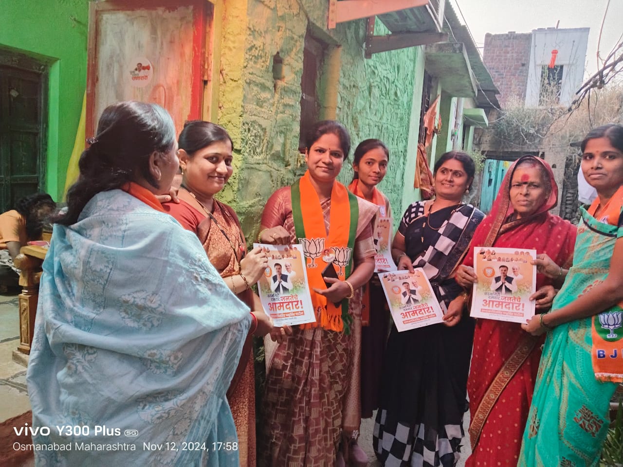 तुळजापूरचे उमेदवार राणा दादा पाटील यांच्या प्रचारार्थ जिल्हा परिषदेच्या माजी अध्यक्ष अस्मिता ताई कांबळे यांनी घरोघरी जाऊन साधला महिलांशी संवाद