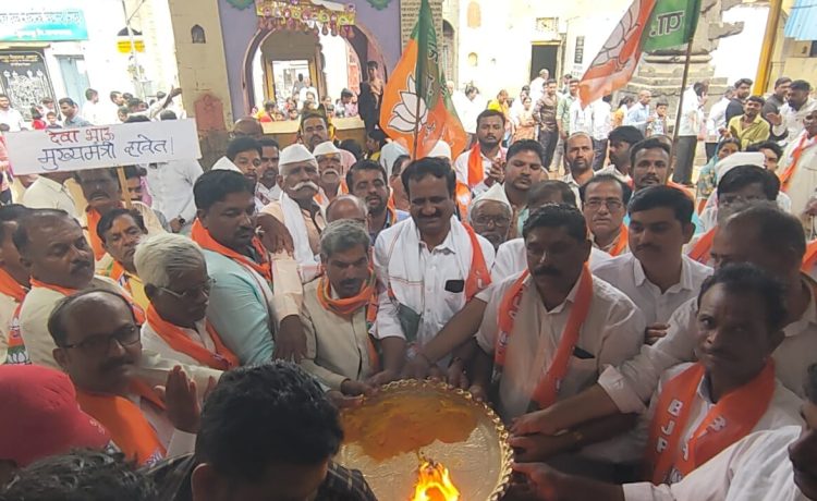 तुळजापूर विशेष प्रतिनिधी / चंद्रकांत हगलगुंडे : तुळजापूर विधानसभा मतदारसंघात महायुतीचे धडाकेबाज उमेदवार आमदार राणा दादा पाटील यांच्या विक्रमी विकास कामामुळे व लाडक्या बहिणीच्या आशीर्वादामुळे विक्रमी मताने दुसऱ्यांदा राणा दादा पाटील विजयी झाले असून देवेंद्र फडणवीस मुख्यमंत्री तर राणा दादा कॅबिनेट मंत्री व्हावे यासाठी ग्रामदैवत खंडेराया चरणी महाआरती करून व श्रीफळाचे तोरण बांधून अणदूर येथील भारतीय जनता पार्टीच्या वतीने साकडे घातल्याचे शहराध्यक्ष दीपक दादा घोडके यांनी यावेळी बोलताना व्यक्त केले.