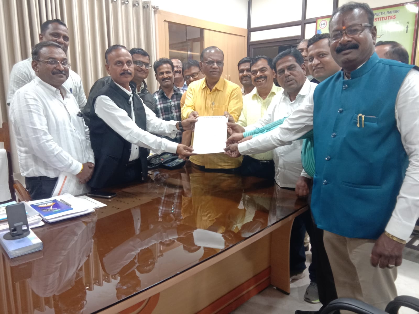 राहुरी कृषि विद्यापीठ व कुलगुरू यांची होत असलेल्या बदनामी विरोधात कर्मचारी समन्वय संघ व मागासवर्गीय कल्याणकारी संघाचे विद्यापीठाच्या कुलसचिवांना निवेदन