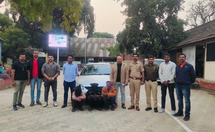 वांबोरी फाटा शिवारात दरोड्याच्या तयारीत असलेल्या तीन आरोपीस राहुरी पोलिसांनी केले गजाआड गुन्ह्यासाठी वापरलेली कार व हत्यारे जप्त उर्वरित 2 आरोपींचा शोध सुरू