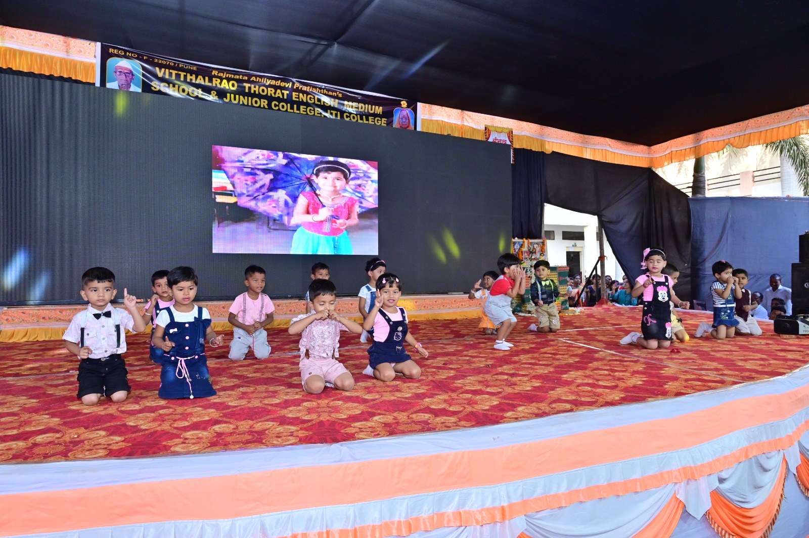 यावेळी प्रमुख उपस्थिती म्हणून महाराष्ट्र राज्याचे कॅबिनेट मंत्री मा. श्री. दत्तात्रय (मामा) भरणे कार्यक्रमाला लाभले होते. त्यांचे स्वागत विद्यार्थिनी कडून झांज पथक व लेझीम पथक खेळत करण्यात आले. तसेच मा. श्री. प्रदीप दादा गारटकर, मा. श्री. विनोद महांगडे, मा. श्री. अजिंक्य खरात, मा. श्री. संजय खालतकर, भिगवण ग्रामपंचायत सरपंच मा. सौ दीपिका क्षीरसागर, मा. सौ. मनिषा दुर्गे, मा. श्री. सत्यवान भोसले, मा. श्री. ॲड. महेश दादा देवकाते, मा. श्री. बापूराव थोरात, मा. श्री. विजय भैय्या थोरात, संस्थेच्या प्राचार्य सौ. वंदना थोरात मॅडम, मा. श्री. मारुतराव थोरात, मा. श्री. नंदकिशोर थोरात, मा. श्री. संतोष थोरात, मा. श्री. अजय थोरात यांनी देखील उपस्थित राहून कार्यक्रमाची शोभा वाढवली. नंतर विद्यालयाच्या सर्व महिला शिक्षकांनी आपल्या मधुर स्वरामध्ये स्वागत गीत गाऊन आदरणीय मामांचे व उपस्थित सर्व मान्यवरांचे स्वागत केले. नंतर उपस्थित सर्व मान्यवरांच्या हातसे दीपप्रज्वलन करण्यात आले. आदरणीय मामांचा सत्कार थोरात कुटुंबीयान कडून करण्यात आला. तसेच उपस्थित सर्व मान्यवरांचा सत्कार करण्यात आला.नंतर विद्यालयाच्या प्राचार्य सौ वंदना थोरात यांनी प्रास्ताविक केले तसेच श्री. महेशदादा देवकाते यांनी विद्यार्थ्यांना मार्गदर्शन केले. नंतर आदरणीय मामांनी विद्यार्थ्यांना मार्गदर्शन केले. नंतर कार्यक्रमाची सुरुवात करण्यात आली त्यावेळी आदरणीय मामाच्या समवेत गणपती सॉंग इयत्ता सातवी ब, शिवतांडव इयत्ता सहावी, हिरकणी सॉंग इयत्ता बारावी, मला भुताने झपाटलं इयत्ता सहावी, आर्मी थीम इयत्ता आठवी असे विविध गीत डान्स त्यांच्यासमोर सादर करण्यात आले.