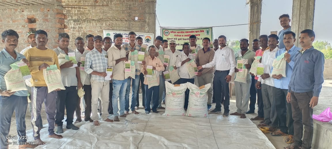 याप्रसंगी चारा पिके संशोधन प्रकल्पाचे शास्त्रज्ञ डॉ. संदीप लांडगे, नंदुरबार कृषी विज्ञान केंद्राचे शास्त्रज्ञ डॉ. आदित्य देशपांडे व चारा पिके प्रकल्पातील कनिष्ठ संशोधन सहाय्यक श्री. दीपक पालवे यावेळी उपस्थित होते. यावेळी झालेल्या कार्यक्रमात चारा पिके संशोधन प्रकल्पाच्या आदिवासी उपयोजनेअंतर्गत प्राप्त अनुदानातून आदिवासी शेतकऱ्यांना रब्बी हंगामातील ओट व बरसिम या चारा पिकांचे बियाणे व मनुष्यचलित सायकल कोळपे तसेच कृषिदर्शनींचे वाटप करण्यात आले.
