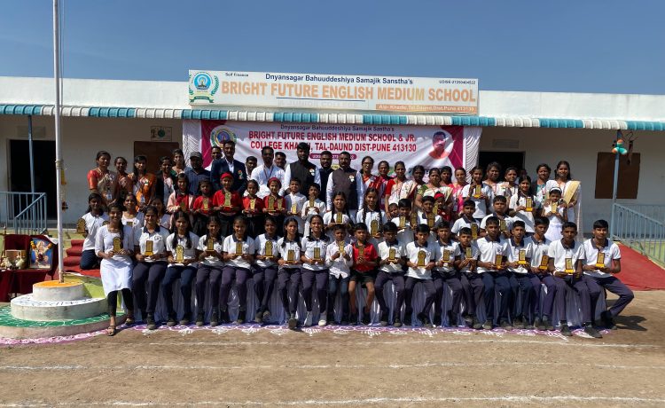 इंदापूर प्रतिनीधी / प्रवीण वाघमोडे : 26 जानेवारी 2025 : आज ब्राईट फ्युचर इंग्लिश मीडियम स्कूल अँड ज्युनिअर कॉलेज खडकी येथे 76 वा प्रजासत्ताक दिन उत्साहाने व आनंदाने साजरा करण्यात आला. आजच्या कार्यक्रमासाठी लाभलेले प्रमुख पाहुणे स्वयं-प्रेरणा या संस्थेचे संस्थापक, लेखक , प्रवचन कार, प्रेरणादायी वक्ते, सामाजिक कार्यकर्ते दिनेश आदलिंग सर यांचे सकाळी आगमन झाले. कार्यक्रमाची सुरुवात प्रमुख पाहुण्यांच्या हस्ते व संस्थेच्या सर्व मान्यवरांच्या हस्ते देवी सरस्वती व भारत मातेच्या प्रतिमेचे पूजन व पुष्पहार अर्पण करून करण्यात आली.