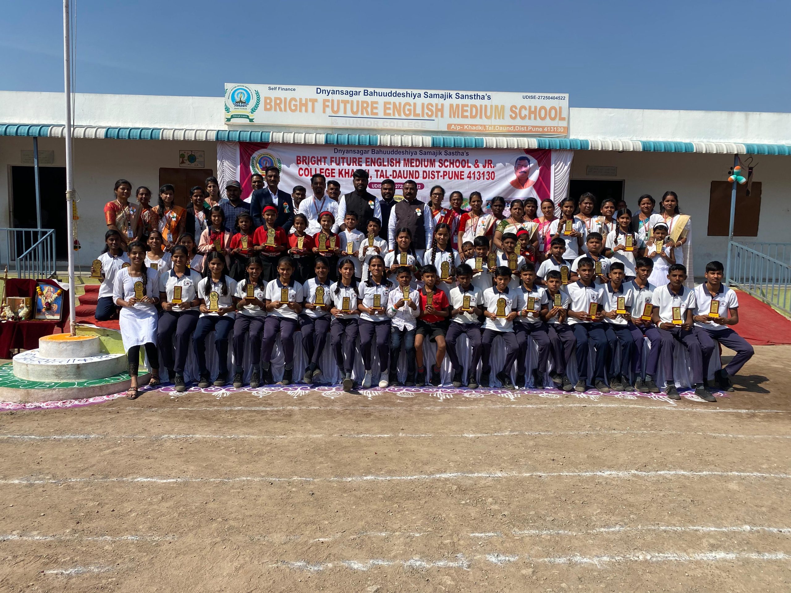 यावेळी प्रमुख पाहुण्यांच्या हस्ते ध्वजारोहण करण्यात आले. त्यानंतर राष्ट्रगीत व झेंडा गीत झाले. यावेळी संस्थेचे अध्यक्ष राजू गायकवाड, संचालिका रोहिणी गायकवाड, सचिव ऋषिकेश गायकवाड, खजिनदार तुषार काळे,उपाध्यक्ष तेजस गायकवाड, स्कूलचे प्राचार्य बाबू सांगळे, सर्व शिक्षक वृंद, विद्यार्थी व पालक उपस्थित होते. ध्वजारोहणानंतर विद्यार्थ्यांनी परेड करून तिरंग्याला सलामी दिली. यानंतर आलेल्या पाहुण्यांचा सत्कार व संस्थेच्या सर्व मान्यवरांचे सत्कार झाले. आजच्या कार्यक्रमात स्कूलने वर्षभरात घेतलेली ब्राईट फ्युचर टॅलेंट सर्च परीक्षा, खेळांच्या स्पर्धा यामध्ये प्रथम क्रमांक आलेल्या विद्यार्थ्यांचे सत्कार प्रमुख पाहुणे व संस्थेचे मान्यवर यांच्या हस्ते करण्यात आले. यानंतर विद्यार्थ्यांची देशभक्तीपर भाषणे, विविध सांस्कृतिक कार्यक्रम झाले. तसेच भारताचे संविधान व महत्त्व यावर आधारित इयत्ता नववी व अकरावीच्या विद्यार्थ्यांनी एक नाटिका सादर केली.
