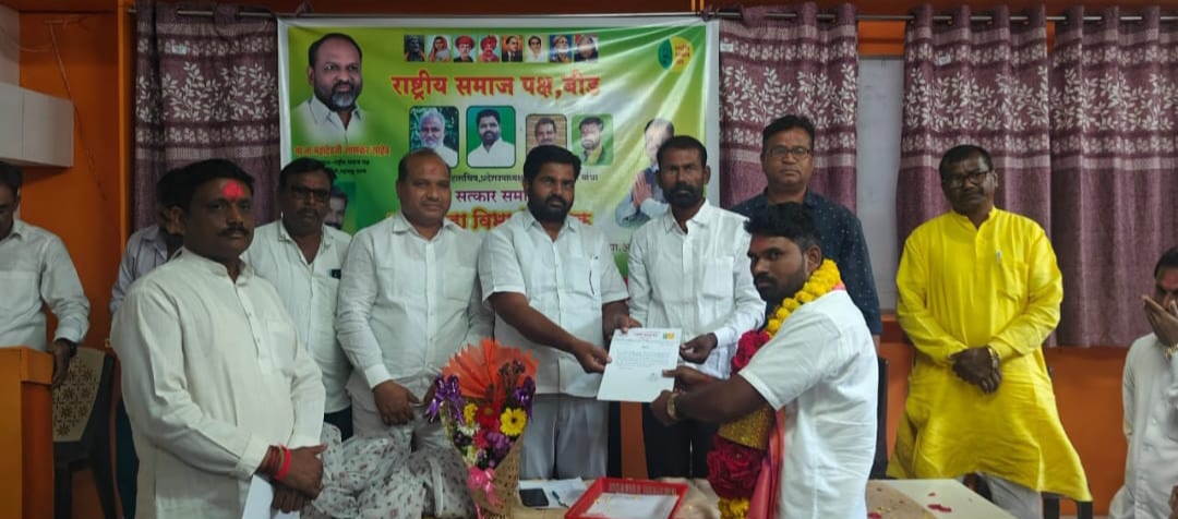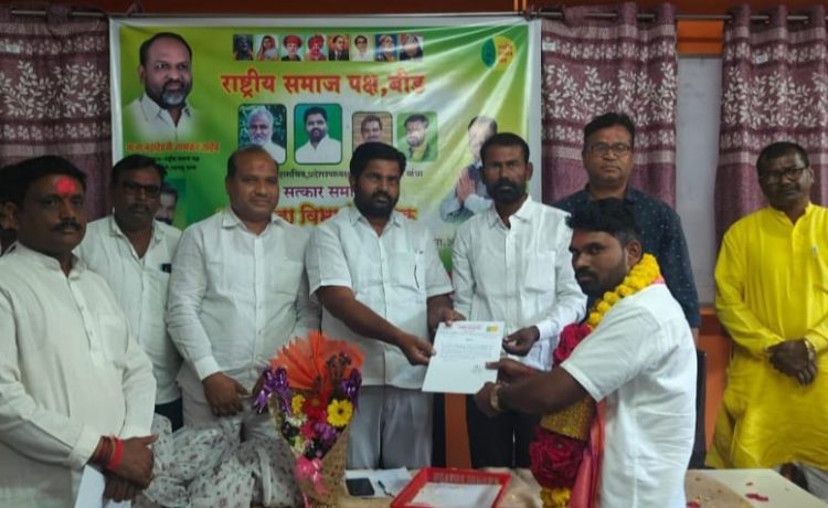 तेर प्रतिनीधी / विजय कानडे : मूळचे तेर येथील रहिवासी असलेले सचिन देवकते यांनी साल 2017 रोजी राष्ट्रीय समाज पक्षात एक कार्यकर्ता म्हणून कामास सुरुवात केली याच कामाची दखल घेत राष्ट्रीय समाज पक्षाचे संस्थापक अध्यक्ष महादेवजी जानकर यांच्या कडून साल 2018 मध्ये तालुका सरचिटणीस पदाची जबाबदारी सचिन देवकते यांच्यावर सोपविण्यात आली त्यानंतर 2019 मध्ये युवक तालुकाध्यक्ष 2021 ला तालुकाध्यक्ष ते 2025 ला धाराशिव जिल्हाध्यक्ष पदाची धुरा सचिन देवकते यांच्या हाती देण्यात आली..