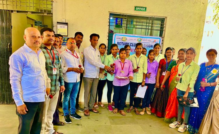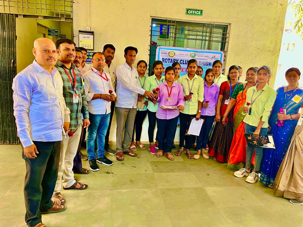 रोटरी क्लब भिगवण व विठ्ठलराव थोरात इंग्लिश मीडियम स्कूल भिगवण यांच्या विद्यमाने बारावी परीक्षार्थींचे गुलाब पुष्प देऊन परीक्षेसाठी शुभेच्छा व स्वागत