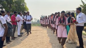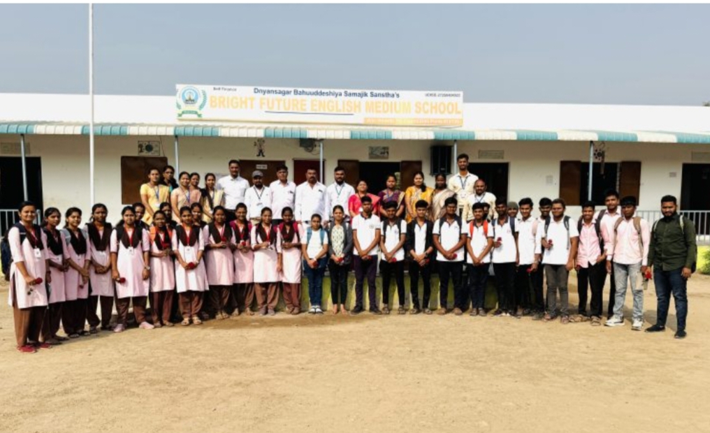 ब्राईट फ्युचर इंग्लिश मीडियम स्कूल मध्ये बारावीच्या विद्यार्थ्यांचे गुलाब पुष्प देऊन स्वागत