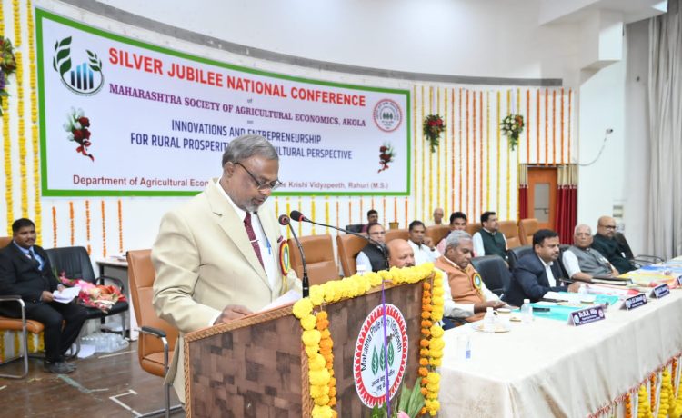 महात्मा फुले कृषि विद्यापीठ, राहुरी येथे ग्रामीण समृद्धीसाठी नावीन्यपूर्ण संशोधन व उद्योजकता: कृषि दृष्टिकोन या विषयावरील महाराष्ट्र सोसायटी ऑफ अग्रिकल्चरल इकॉनॉमिक्स, अकोला व कृषि अर्थशास्त्र विभाग, महात्मा फुले कृषि विद्यापीठ, राहुरी यांच्या संयुक्त विद्यमाने दोन दिवसीय राष्ट्रीय परिसंवादाचे आयोजन करण्यात आले होते. या राष्ट्रीय परिसंवादाच्या समारोपप्रसंगी झालेल्या कार्यक्रमाच्या अध्यक्षस्थानावरून कुलगुरू डॉ. शरद गडाख बोलत होते. याप्रसंगी विस्तार शिक्षण संचालक डॉ. गोरक्ष ससाणे, कृषि अर्थशास्त्र विभाग प्रमुख डॉ. राजेंद्र हिले, महाराष्ट्र सोसायटी ऑफ अग्रिकल्चर इकॉनॉमिक्सचे अध्यक्ष डॉ. डी. एल. साळे, संस्थेचे सेक्रेटरी डॉ. आर. जी. देशमुख, अकोला येथील सोसायटीचे कोषाध्यक्ष डॉ. एस. सी. नागपुरे, विविध कृषि विद्यापीठातील डॉ. सचिन मोटे, डॉ. तोरणे व डॉ. एन. व्ही. शेंडे उपस्थित होते.