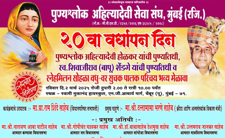 चेंबूर मध्ये पुण्यश्लोक अहिल्यादेवी सेवा संघाच्या २० व्या वर्धापनदिना निमित्त विविध कार्यक्रमांचे आयोजन.