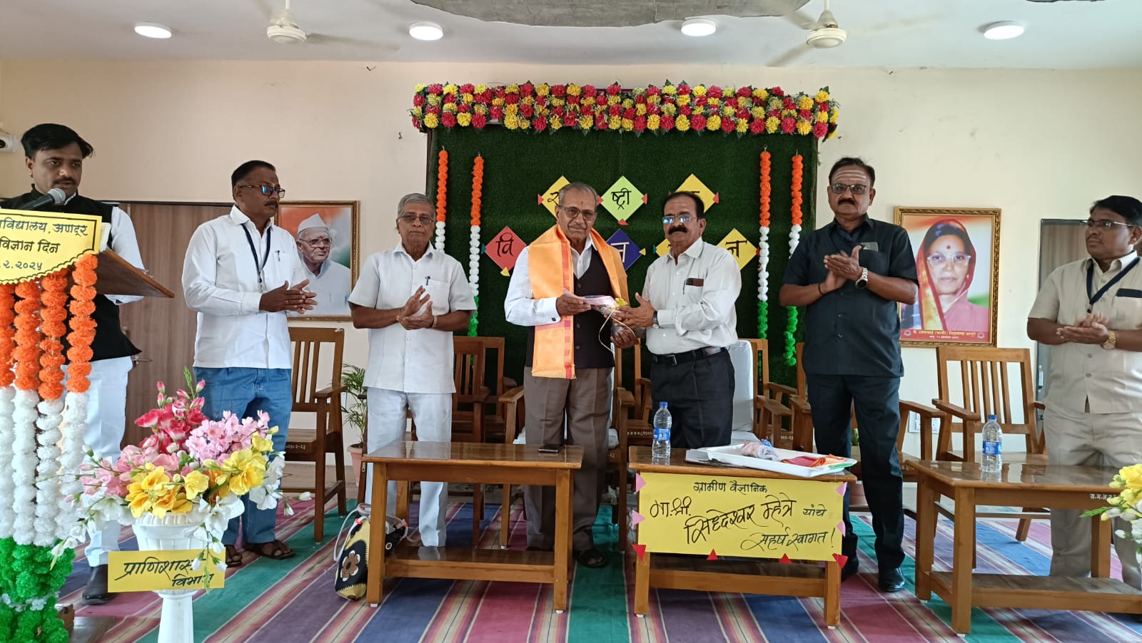 अणदूर प्रतिनिधी / चंद्रकांत हगलगुंडे : येथील शिक्षण प्रसारक मंडळ संचलित जवाहर महाविद्यालयामध्ये विज्ञान विभागाच्या वतीने राष्ट्रीय विज्ञान दिनानिमित्त सप्रयोग व्याख्यानाचे आयोजन करण्यात आले होते. या व्याख्यानासाठी प्रमुख मार्गदर्शक म्हणून आनंदवन मंद्रूप येथील ग्रामीण वैज्ञानिक सिद्धेश्वर म्हेत्रे हे उपस्थित होते व महाविद्यालयाचे प्राचार्य डॉ.उमाकांत चनशेट्टी कार्यक्रमाच्या अध्यक्षस्थानी होते. सेवानिवृत्त अधिकारी अरविंद लोणी, उपप्राचार्य डॉ. मल्लिनाथ लंगडे, डॉ. डी एस सूर्यवंशी, डॉ.सूर्यकांत आगलावे,डॉ. विश्वास माने डॉ.सिद्धेश्वर बाड, डॉ एस व्ही राजमाने यांची प्रमुख उपस्थिती होती.