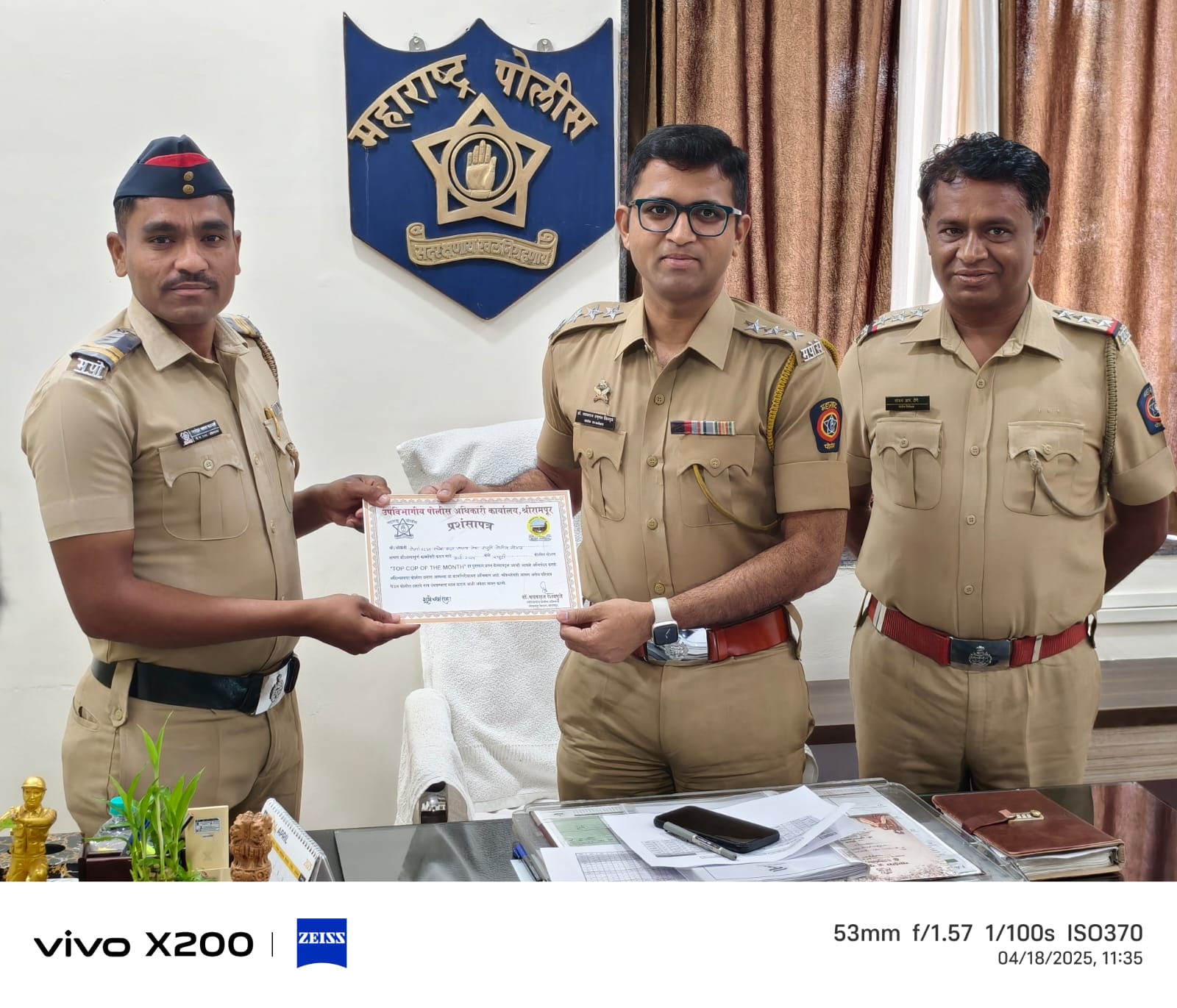 राहूरी प्रतिनिधी / आर. आर. जाधव : मा. मुख्यमंत्री सो, यांचे 100 दिवसांच्या कृती आराखडा उद्दिष्ट पूर्तीच्या अनुषंगाने पोलीस अधिकारी कर्मचारी यांची त्यांच्या कामातील प्रेरणा वाढवून सकारात्मक स्पर्धात्मक वातावरण तयार करण्याच्या दृष्टीने माननीय विशेष पोलीस महानिरीक्षक श्री दत्तात्रय कराळे साहेब, नाशिक परिक्षेत्र यांच्या संकल्पनेतून माननीय पोलीस अधीक्षक अहिल्यानगर श्री राकेश ओला साहेब, अप्पर पोलीस अधीक्षक श्री वैभव कलुबर्मे साहेब यांच्या मार्गदर्शनात उपविभागीय पोलिस अधिकारी श्री बसवराज शिवपूजेसाहेब यांनी केलेल्या मूल्यांकनात राहुरी पोलीस स्टेशनचे पोलीस नाईक गणेश सानप यांची राहुरी पोलीस स्टेशन कडील मार्च 2025 चे बेस्ट कॉप म्हणून निवड केली .