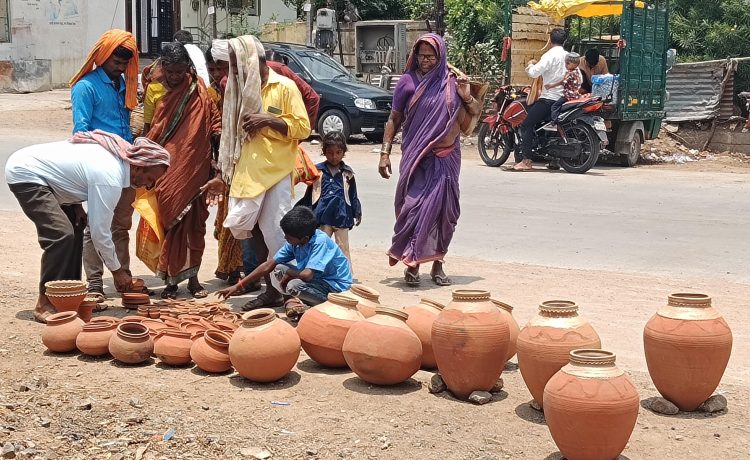 बिलोली प्रतिनिधी / साईनाथ गुडमलवार कासराळीकर : उन्हाच्या पारा वाढल्यामुळे नागरिकांना आता थंड पाण्याची आवश्यकता भासू लागली आहे.सालाबादप्रमाणे ‘गरिबांचा फ्रिज’ म्हणून संबोधल्या जाणाऱ्या माठाचे बाजारात आगमन झाले आहे. माठाचा वापर हा पर्यावरणासाठीही चांगला आहे, कारण तो नैसर्गिकरित्या थंड पाणी ठेवतो आणि त्यात प्लास्टिकचा वापर होत नाही. मात्र, माठासाठी लागणाऱ्या कच्च्या मालाच्या किमतीत वाढ झाल्याने यंदा माठाच्या किमती गेल्या वर्षीच्या तुलनेने साधारण वाढ झाली आहे.