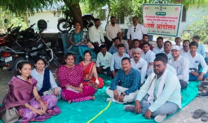 राहुरी येथे कृषी सहाय्यकांचे तालुका कृषी कार्यालयासमोर विविध मागण्यांसाठी धरणे आंदोलन