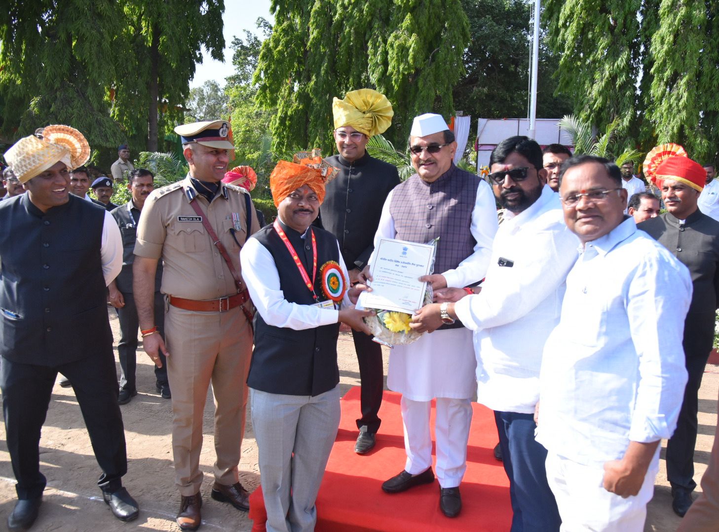 सोनई प्रतिनिधी/ मोहन शेगर : शनीशिंगणापूरचे पोलीस पाटील यांना राज्यपालाच्या वतीने दिला जाणारा उल्लेखनीय सेवेबद्दल उल्लेखनीय सेवा पुरस्कार अॅड सयाराम पाटील बानकर यांना 1मे महाराष्ट्र दिनी राज्यपालाच्यावतीने जिल्ह्याचे पालकमंत्री ना राधाकृष्ण विखे पाटील यांच्या हस्ते पोलीस मुख्यालयाच्या प्रांगणात प्रदान करण्यात आला. यावेळी अहिल्यानगरचे जिल्हाधिकारी पंकज आशिया जिल्हा पोलीस प्रमुख राकेश ओला , जिल्हा परिषदेचे मुख्य कार्यकारी अधिकारी आशिष येरेकर, आदी मान्यवर उपस्थित होते राज्यातील पोलीस पाटलांचा सर्वोच्च पुरस्कार मानला जातो नामदार विखे यांच्या हस्ते अँड सयाराम बानकर यांना प्रशस्तीपत्रक स्मृतीचिन्ह, व रोख 25 हजार रुपये असे या पुरस्काराचे स्वरूप आहे.