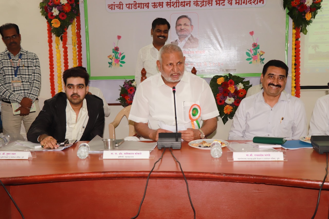 याप्रसंगी संवाद साधताना कृषिमंत्री अॅड. माणिकराव कोकाटे पुढे म्हणाले की या संशोधन केंद्राला 94 वर्षे पूर्ण झालेले असून त्याचे बळकटीकरण करणे गरजेचे आहे. या संशोधन केंद्रामध्ये शेतकरीभिमुख आंतरराष्ट्रीय दर्जाचे संशोधन व्हावे यासाठी मी या संशोधन केंद्राला नवी प्रशासकीय इमारत, शेतकरी निवास व प्रशिक्षण केंद्र, कर्मचारी निवासस्थान, टिशू कल्चर प्रयोगशाळा, कृत्रिम बुद्धिमत्ता प्रक्षेत्र कार्यालय उभारणीसाठी तत्वतः मान्यता देत आहे. या संशोधन केंद्राने उसाचे 86032, फुले 265, 15012, 15006, 13007 असे अनेक सरस वाण दिलेले आहेत. यापुढे या संशोधन केंद्राने कमी कालावधीचे व अधिक साखर उतारा देणारे वाण विकसित करावे.