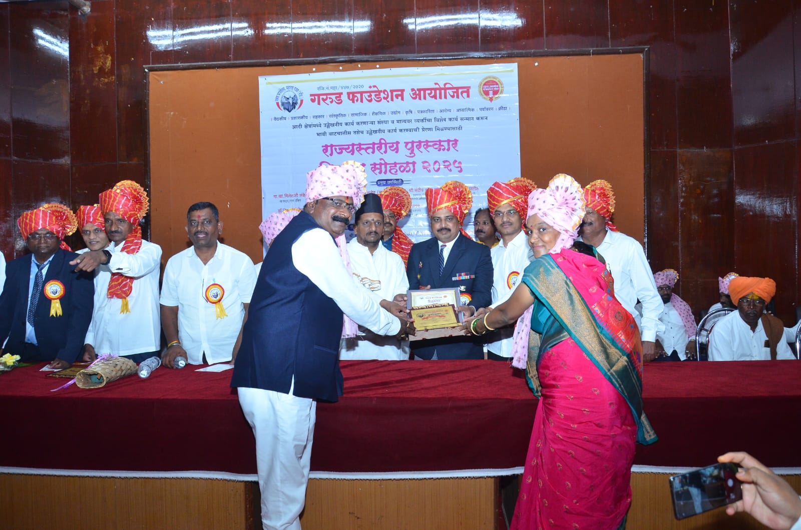 यावेळी अहिल्यानगरचे खासदार मा. श्री निलेशजी लंके , माजी मंत्री प्राजक्त तनपुरे , मा. श्री रावसाहेब खेवरे नाना, युवा ग्रामीण पत्रकार संघाचे जिल्हाध्यक्ष बाळकृष्ण भोसले, गरुड फाउंडेशनचे कार्याध्यक्ष व आयोजक पत्रकार मा. श्री रमेश खेमनर गरुड फाउंडेशनचे अध्यक्ष आकाश पुजारी, विजय तमनर, ज्ञानेश्वर बाचकर, जावेद शेख, सोमनाथ वाघ, पत्रकार श्री. आर. आर. जाधव, सुनील कोकरे यांच्या हस्ते पुरस्कार वितरण सोहळा पार पडला.