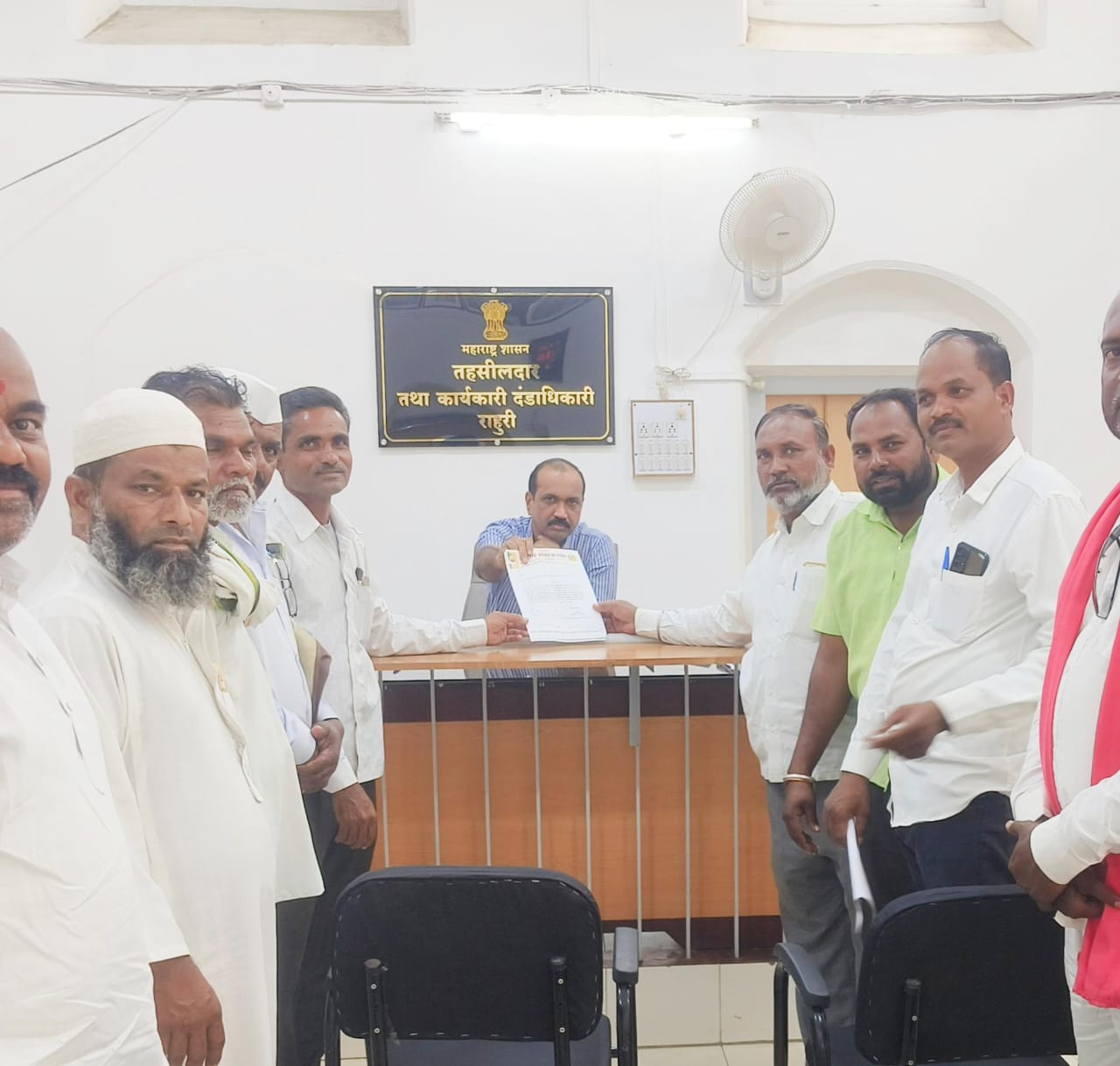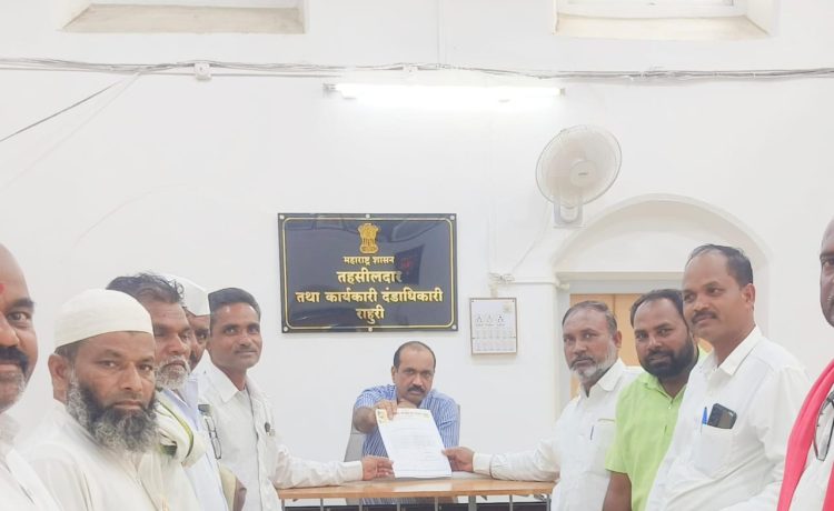 राहुरी तहसीलदार नामदेव पाटील यांना राष्ट्रीय समाज पक्ष राहुरी येथे पदाधिकाऱ्यांनी निवेदन दिले यावेळी राष्ट्रीय समाज पक्ष जिल्हा संपर्कप्रमुख नानासाहेब जुंधारे, तालुकाप्रमुख शिवाजी खेडेकर, उपप्रमुख जबाजी बाचकर, अल्पसंख्याक अध्यक्ष बिलाल शेख, गटप्रमुख कमालभाई शेख आदी पदाधिकाऱ्यांनी निवेदन दिले व शासनाने याची दखल घ्यावी अशी तहसीलदार साहेबांना निवेदनाद्वारे विनंती केली
