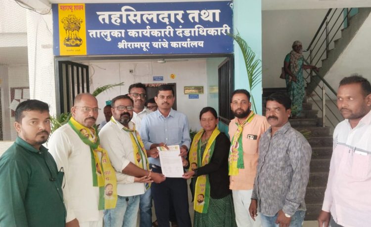 निवेदनात स्पष्ट करण्यात आले आहे की, शेतकऱ्यांचे संपूर्ण कर्ज माफ करून सातबारा कोरा करावा, अन्यथा रासपकडून तीव्र आंदोलन छेडले जाईल. हे निवेदन तहसीलदारांमार्फत शासनापर्यंत पोहोचविण्यात आले.या निवेदनावर रासप जिल्हाध्यक्ष नंदू भाऊ खेमनर (अहिल्यानगर), युवक जिल्हाध्यक्ष गणेश राशीनकर (अहिल्यानगर), महिला तालुकाध्यक्ष अनिता आढाव (श्रीरामपूर), सोशल मीडिया जिल्हाध्यक्ष इनायत अत्तार (अहिल्यानगर), शेतकरी आघाडी जिल्हाध्यक्ष दादासाहेब कुसेकर (अहिल्यानगर), शहराध्यक्ष सचिन लाटे (श्रीरामपूर), तालुकाध्यक्ष अण्णासाहेब मुंजाळ (श्रीरामपूर), राजेंद्र जमदाडे आणि इतर पदाधिकाऱ्यांच्या सह्या आहेत.