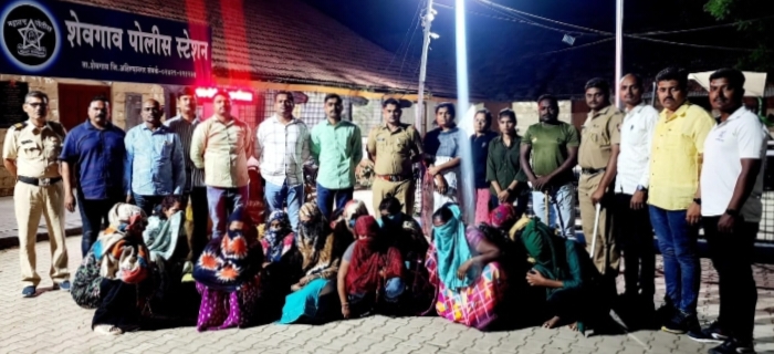 विशेष पोलीस पथकातील पोलीस उपअधीक्षक संतोष खाडे यांना मिळालेल्या माहितीनुसार शेवगाव शहरातील शिवनगर परिसरात अवैध वेश्याव्यवसाय सुरू असल्याची खात्रीशीर माहिती मिळाली. त्यानुसार पथकाने बनावट ग्राहक बनून छापा टाकला. या कारवाई १७ पीडित महिलांची सुटका करण्यात असून पोलीस गीतांजली विजय पाथरकर यांच्या फिर्यादीवरून चार जणांविरुद्ध गुन्हा दाखल करण्यात आला आहे.
