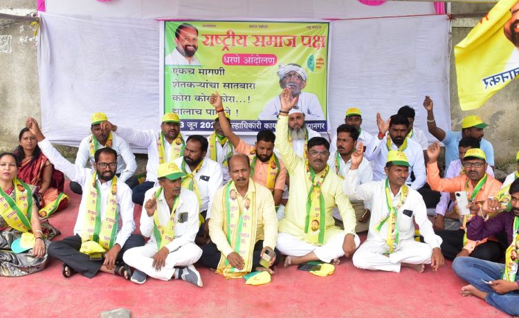 राष्ट्रीय समाज पक्षाचे जिल्हाधिकारी कार्यालयासमोर उपोषण, महाराष्ट्रातील शेतकऱ्यांना सरसकट कर्जमाफी करून सातबारा कोरा करण्याची मागणी