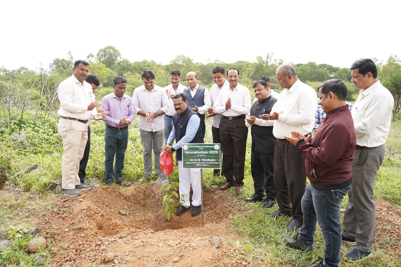 महात्मा फुले कृषि विद्यापीठाचे कुलगुरु डॉ. शरद गडाख यांच्या मार्गदर्शनाखाली विद्यापीठांतर्गत असलेल्या डॉ. अण्णासाहेब शिंदे कृषि अभियांत्रिकी व तंत्रज्ञान महाविद्यालयाच्या मृद व जलसंधारण अभियांत्रिकी विभागांतर्गत वनमहोत्सव 2025 आयोजन करण्यात आले होते.