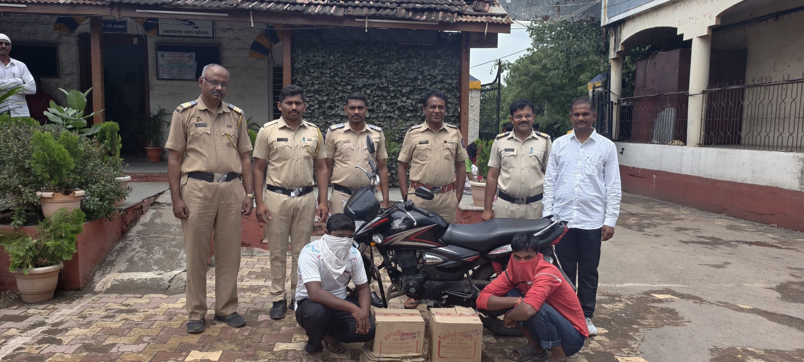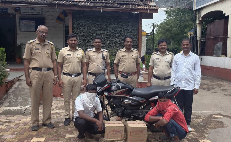 राहुरी प्रतिनिधी / ज्ञानेश्वर सुरशे : दि.१० जुलै २०२४ – राहुरी शहरात अवैधरीत्या वाहनातून दारूची चोरटी वाहतूक होत असल्याची गुप्त माहिती मिळाल्यानंतर पोलिसांनी तात्काळ कारवाई करत दोघांना ताब्यात घेतले. या कारवाईत एकूण ₹८७,६८०/- किमतीचा मुद्देमाल जप्त करण्यात आला आहे. दिनांक १० जुलै २०२४ रोजी सकाळी पोलिस निरीक्षक श्री. संजय ठेंगे यांना गुप्त बातमीदारामार्फत माहिती मिळाली की, राहुरी शहरातून अवैधरित्या मोटारसायकलद्वारे दारूची वाहतूक केली जात आहे. त्यांनी तात्काळ पथक तयार करून तपासाची जबाबदारी सोपवली. पथकाने गोटुंबे आखाडा परिसरात सापळा रचत कार्यवाही केली असता, होंडा शाईन मोटरसायकल (क्र. MH17 CC 7566) वर दारूची चोरटी वाहतूक करताना दोघांना ताब्यात घेतले.