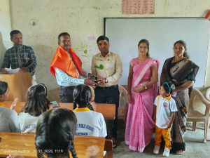 या वेळी शैक्षणिक वर्ष 2024-25 मध्ये इयत्ता दहावीत प्रथम क्रमांक मिळवलेल्या विद्यार्थ्यांचा ट्रॉफी देऊन गौरव करण्यात आला. यासोबतच अनुप्रिया अनिल डोलनर हिच्या हस्ते वृक्षारोपणही करण्यात आले. लहानपणापासूनच विद्यार्थ्यांमध्ये निसर्गप्रेमाची भावना रुजवावी, यासाठी हा छोटासा पण महत्त्वपूर्ण प्रयत्न केला गेला.