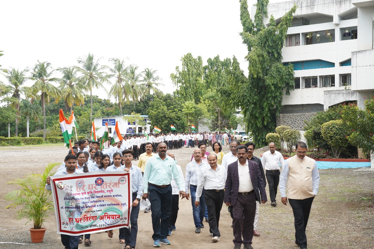महात्मा फुले कृषि विद्यापीठातील राष्ट्रीय सेवा योजना संचालनालय, पदव्युत्तर महाविद्यालय व डॉ. अण्णासाहेब शिंदे कृषी अभियांत्रिकी व तंत्रज्ञान महाविद्यालय यांच्या संयुक्त विद्यमाने हर घर तिरंगा रॅलीचे आयोजन करण्यात आले होते. पदव्युत्तर महाविद्यालयापासून सुरु झालेली रॅली कृषि अभियात्रिकी महाविद्यालयामार्गे काढण्यात आली होती या रॅलीची सांगता प्रशासकीय इमारतीसमोर करण्यात आली. यावेळी रॅलीला मार्गदर्शन करताना विद्यापीठाचे अधिष्ठाता डॉ. साताप्पा खरबडे बोलत होते.