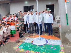 श्रीरामपूर (प्रतिनिधी) : श्रीरामपूर तालुक्यातील मांडवे येथील आनंद निकेतन इंग्लिश मीडियम स्कूल येथे 15 ऑगस्ट स्वातंत्र्य दिनाचा उत्सव मोठ्या उत्साहात साजरा करण्यात आला. या वेळी ध्वजारोहणाचा मान देशाच्या सीमेवर शौर्याने कर्तव्य बजावणारे गंगापूर येथील जवान श्री. विजयराव नान्नोर यांच्या हस्ते संपन्न झाला.