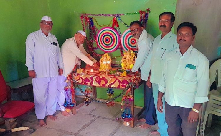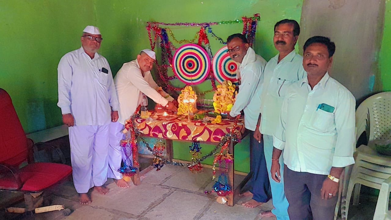 मानोरीतील सहकारी सोसायटीत गणरायाचे जल्लोषात आगमन, सचिव, सहसचिव आणि ग्रामस्थांच्या उपस्थितीत पारंपरिक पूजन