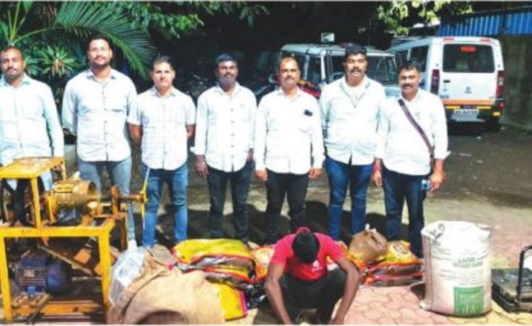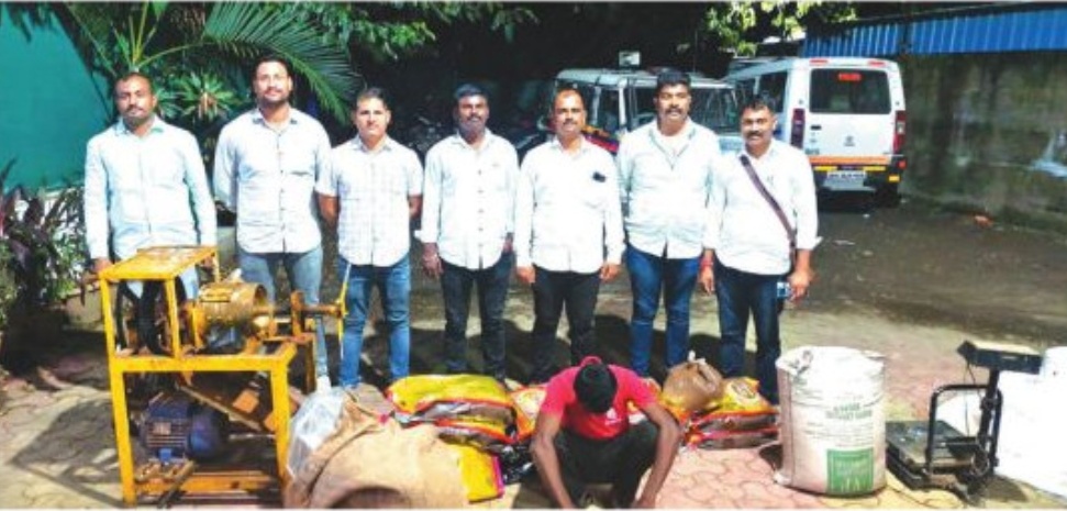 नेवासा (प्रतिनिधी) / मोहन शेगर : सोनई, नेवासा तालुक्यातील अंमळनेर येथे मावा बनविण्याच्या कारखान्यावर गुन्हे अन्वेषण विभागाने कारवाई केली. गेली अनेक दिवसांपासून सोनई परिसरात पोलीस ठाण्याचे हद्दीत अवैध धंद्यांना पोषक असे वातावरण तयार झाले. त्याच अनुषंगाने अहिल्यानगर येथील स्थानिक गुन्हे अन्वेषण विभागाचे किरण कुमार कबाडी यांच्या आदेशानुसार मिळालेल्या माहितीनुसार संबंधित ठिकाणी गुन्हे अन्वेषण विभागाचे पोलीस हेड कॉन्स्टेबल राहुल द्वारके, पोलीस नाईक रिचर्ड गायकवाड, पोलीस नाईक सोमनाथ झांबरे, पोलीस नाईक बाळासाहेब नागरगोजे, पोलीस कॉस्टेबल रमीझराजा आतार, पोलीस कॉस्टेबल प्रकाश मांडगे यांच्या पथकाने जाऊन पहाणी केली असता त्या ठिकाणी आरोपी सुनील आण्णासाहेब येळे (वय.२८) हा त्या ठिकाणी मावा बनविताना मिळून आला. ३८.५०० रुपये किंमतीची पाच किलोचे अकरा पाकिटे, सात हजार चे पाच पाकिटे, तिस हजाराची साठ किलो सुपारी, छत्तिशे रुपयांचा तयार मावा, सत्तर हजार रुपये किंमतीची मावा बनवण्यासाठी लागणारे मशीन, पाच हजार रुपये किंमतीचा वजन काटा, असा ऐवज ताब्यात घेतला आहे